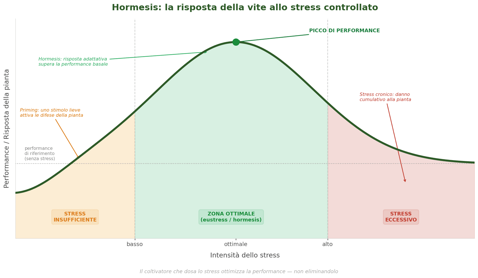 Hormesis: la risposta della vite allo stress controllato - grafico a campana con zona ottimale